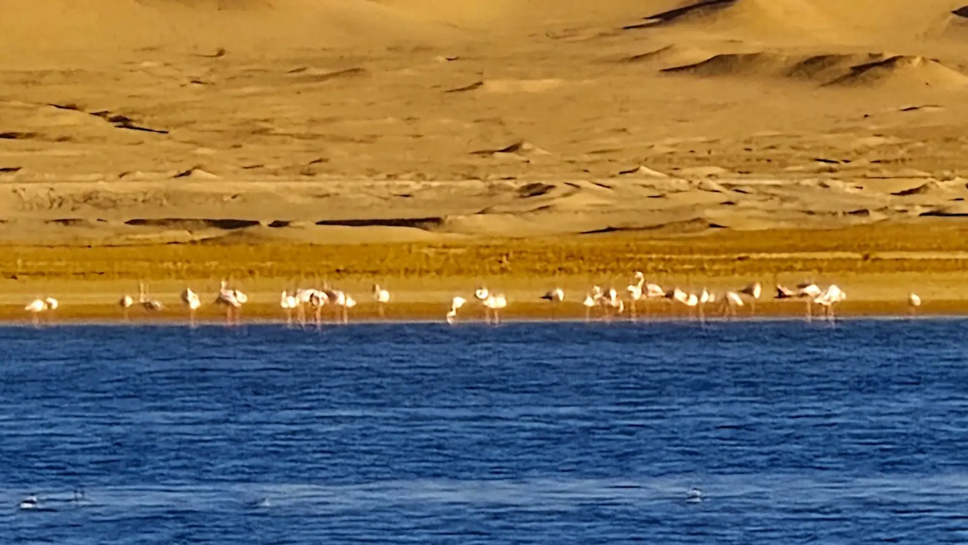 End your day here. The quiet desert surrounding the lake is home to different bird types.